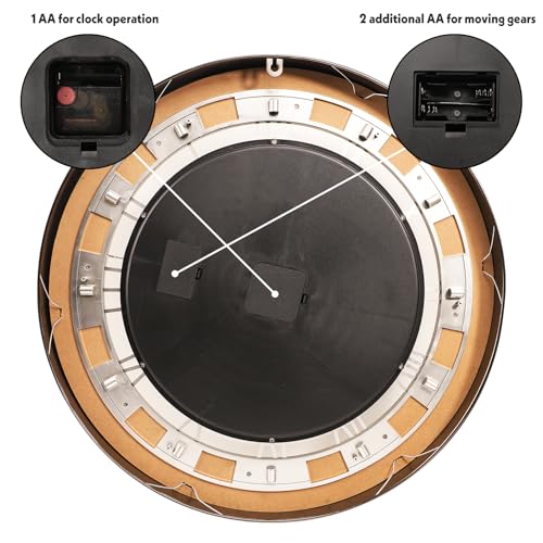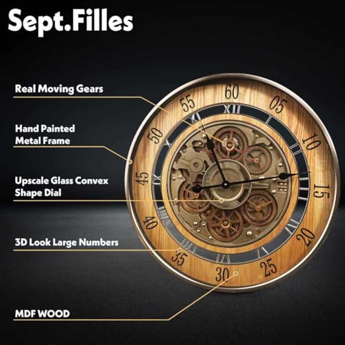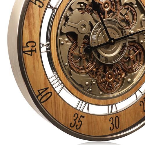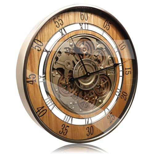 - 【ساعة تروس متحركة حقيقية】جميع تروس ساعة الحائط تتحرك بشكل حقيقي! تصميم بلون برونزي ريفي ونمط صناعي. مزيج إبداعي من أربعة تروس لمظهر كلاسيكي، له تأثير زخرفي رائع للغاية يجعل ساعة الحائط تصبح أعمال فنية أنيقة. ساعة الحائط الكبيرة مصنوعة من الخشب الطبيعي وخشب ليفي متوسط الكثافة. أرقام رومانية كبيرة وتروس متحركة خشبية ريفية مثالية لأي ديكور للغرفة.