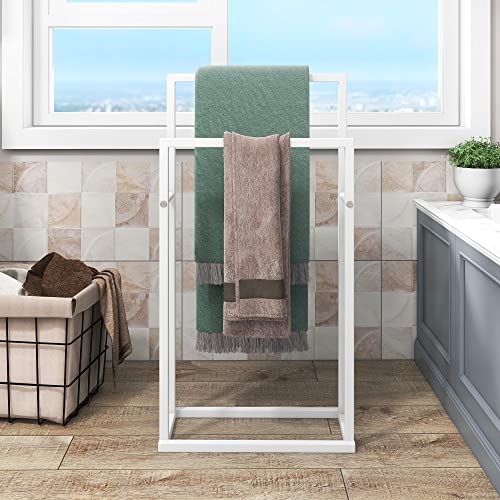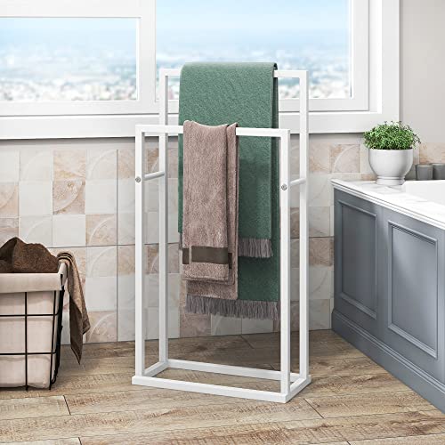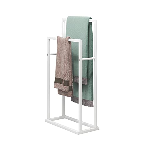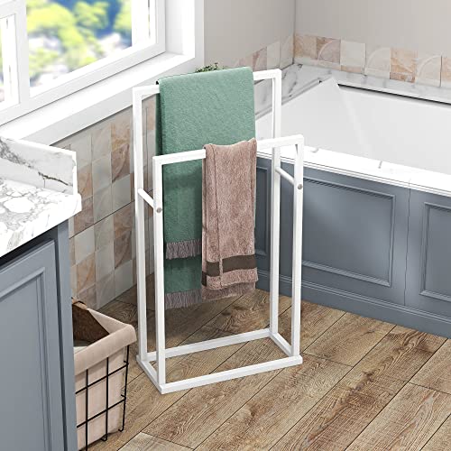 HOJINLINERO - حامل فوط قائم بذاته من طبقتين، حامل فوط معدني ورف تجفيف للحمام والمطبخ، سلم تعليق للملابس وتخزين الحمام وفوط اليد ومناشف الغسيل من هوجينلينيرو
