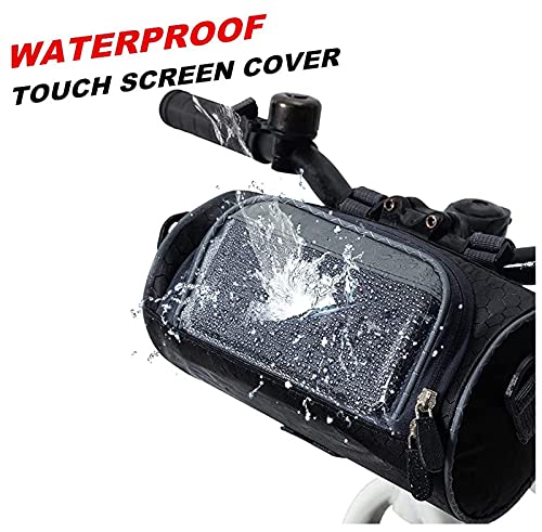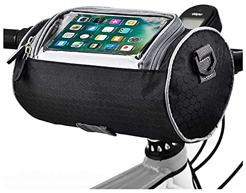HOJKMA - شنطة لمقود الدراجة من هوكيما، سلة امامية للدراجات، شنطة امامية مقاومة للماء للتخزين، شنطة بتثبيت امامي وفتحة 7 بوصة للشاشات التي تعمل باللمس وحمالة للكتف قابلة للفصل، سوداء