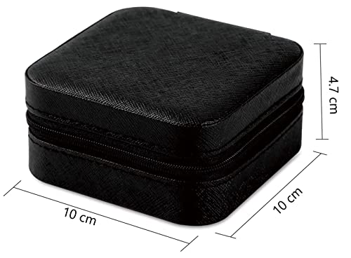 - حجم علبة المجوهرات للسفر - 10 × 10 × 4.7 سم، تصميم مزدوج الطبقات، سعة كبيرة، على الرغم من صغر حجم صندوق المجوهرات، فإن التصميم الداخلي يوفر مساحة مع الحفاظ على سعة كبيرة. يمكنك تخزين السلاسل والحلقان والأساور والمجوهرات الأخرى في نفس الوقت دون أن تشغل مساحة كبيرة.