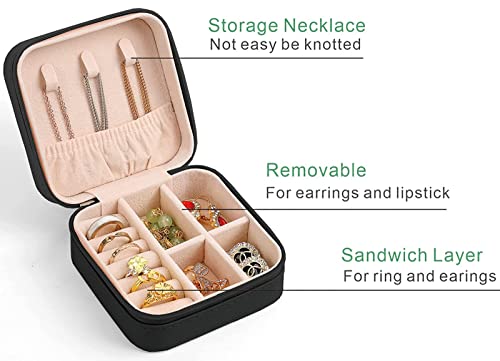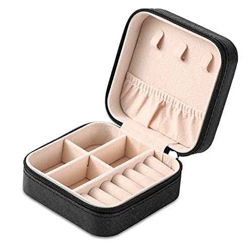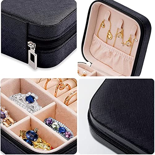 HOJKMA - علبة مجوهرات صغيرة لتنظيم وتخزين المجوهرات أثناء السفر من هوكما، منظم محمول من الجلد الصناعي، صندوق عرض وتخزين للمجوهرات والإكسسوارات من السلاسل والحلقان والخواتم للنساء والبنات، أسود