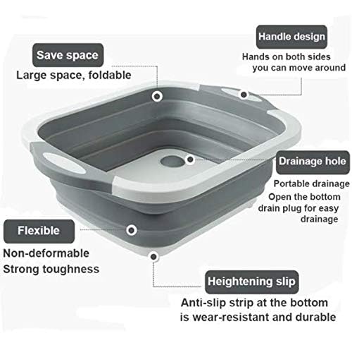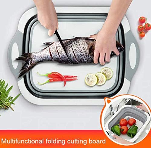 Hojo - لوح تقطيع قابل للطي 3 في 1 من هوجو، وعاء غسل وسلة تصريف متعددة الوظائف، لوح تقطيع الفواكه والخضروات، منظم مطبخ للسفر في الهواء الطلق والتخييم والنزهات والشواء، متعدد الألوان