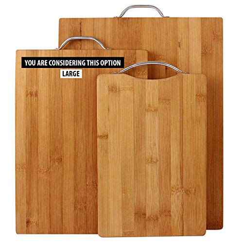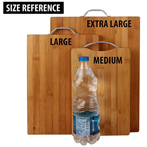 HOKIPO - لوح تقطيع خشبي من الخيزران بمقبض من هوكيبو - مقاس لارج كبير 34 × 24 × 1.8 سم