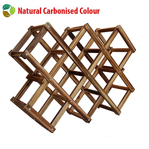 HOKIPO - رف خشب قابل للطي لعرض زجاجات المشروب، حامل زجاجات المشروب، حامل زجاجات بسعة 10 زجاجات من هوكيبو، مقاس 45 × 31 × 12 سم (لون كربوني، بدون طلاء زيتي)