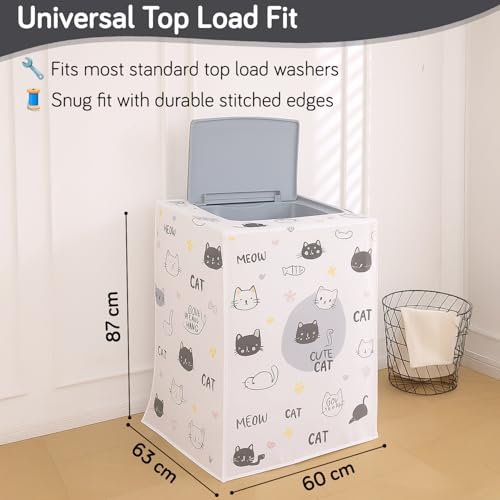 HOKIPO - غطاء غسالة هوكيبو ذات التحميل العلوي | غطاء واقٍ من مادة البولي إيثيلين فينيل أسيتات (PEVA) مقاوم للماء والغبار، مناسب بأوزان 6، 6.5، 7 كجم، و7.5 كجم | مقاس 60×63×87 سم (AR-5879-D6)