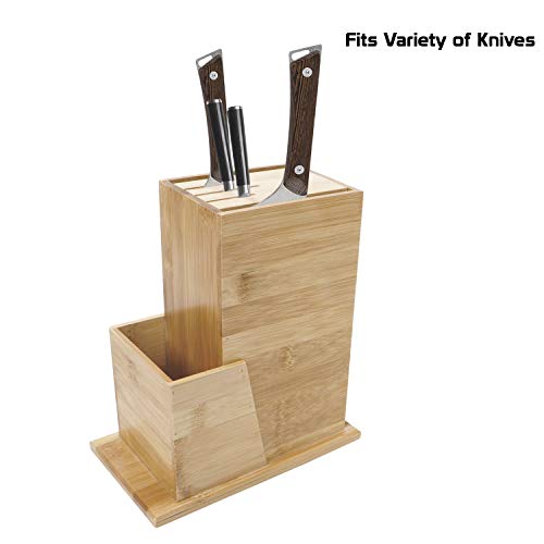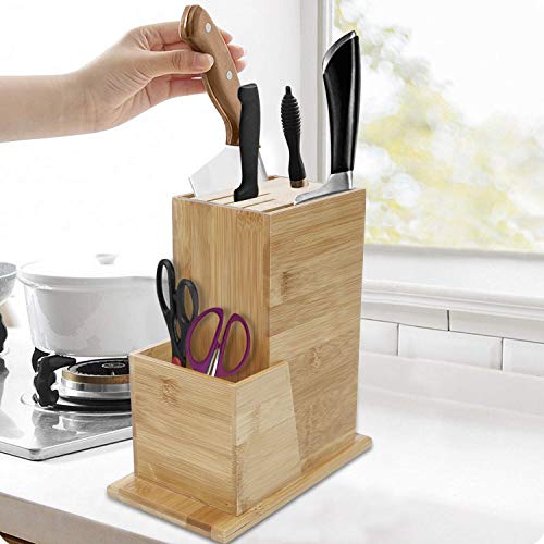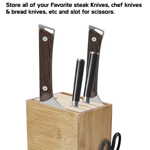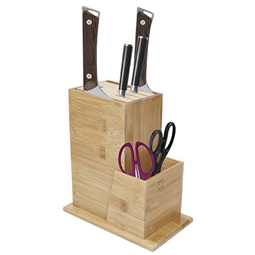 - حامل سكاكين عالمي بـ 5 فتحات - حامل سكاكين المطبخ العالمي هوكيبو ذو الكتلة الخشبية هو حل عصري ومتطور لتخزين السكاكين. يحتوي حامل السكاكين هذا على مجموعة متنوعة من العروض مما يسمح لك بتخزين جميع سكاكين اللحم المفضلة لديك وسكاكين الطهاة والساطور وسكاكين الخبز. تتضمن فتحة لشحذ القضيب ومقصات المطبخ أيضًا. متين ويدوم طويلاً: حامل السكاكين الخشبي من هوكيبو قوي ومتين لحمل مجموعات السكاكين الثقيلة مع لمسة نهائية من قشرة الخيزران الجميلة التي يسهل تنظيفها بالمسح.