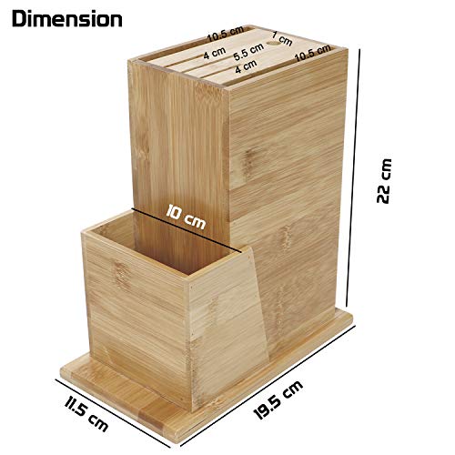 - المقاس - يبلغ مقاس مكعب تخزين السكاكين الطول × العرض × الارتفاع - 22 × 11.5 × 19.5 سم. محتويات العبوة: 1 حامل سكاكين خشبي مع 5 فتحات للسكاكين. هام: السكاكين غير متضمنة.