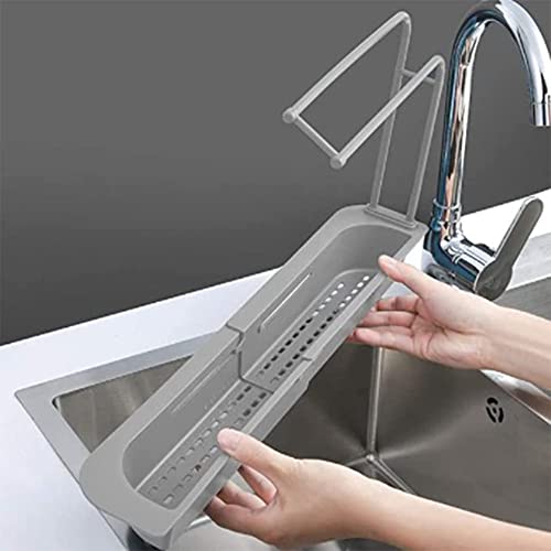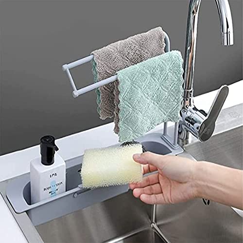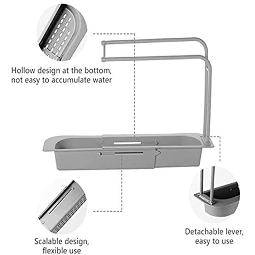 HOKOKO - حامل الحوض المتداخل من هوكوكو رف سلة قابل للتوسيع مناسب لأغراض التخزين - الصابون والإسفنجة مع منشفة لمطبخ المنزل رمادي بلاستيك