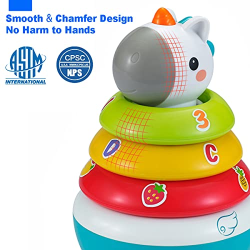 HOLA - لعبة حلقات التكديس للأطفال مع جزء علوي يونيكورن من هولا، ألعاب رولي بولي ووبلر للأطفال الصغار مع صوت خشخيشة، لعبة مونتيسوري التنموية التعليمية المبكرة للأطفال بعمر 3-6 6-9 9-12 شهر، 1 2 3 سنوات