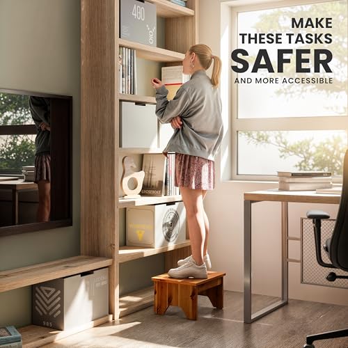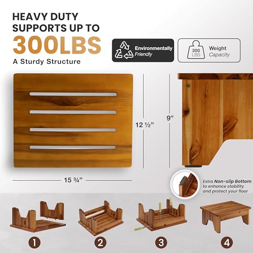 HOLANA - كرسي صغير للحمام من خشب الأكاسيا بخطوة واحدة للبالغين، كرسي خشبي شديد التحمل حتى 227 كجم للسرير المرتفع والحمام وغرفة النوم، لكبار السن والأطفال من هولانا، (ارتفاع 23 سم)