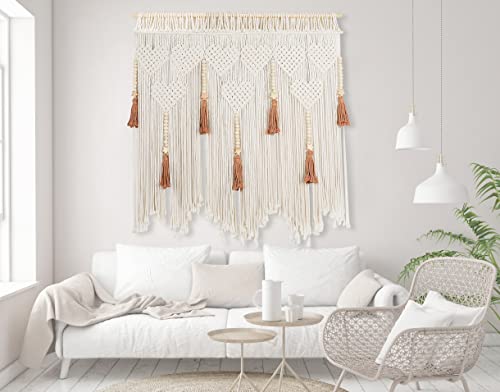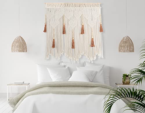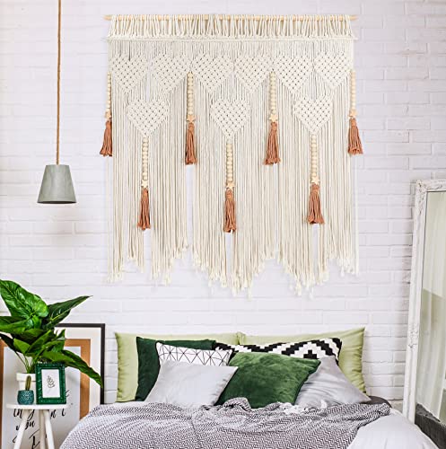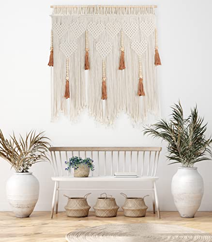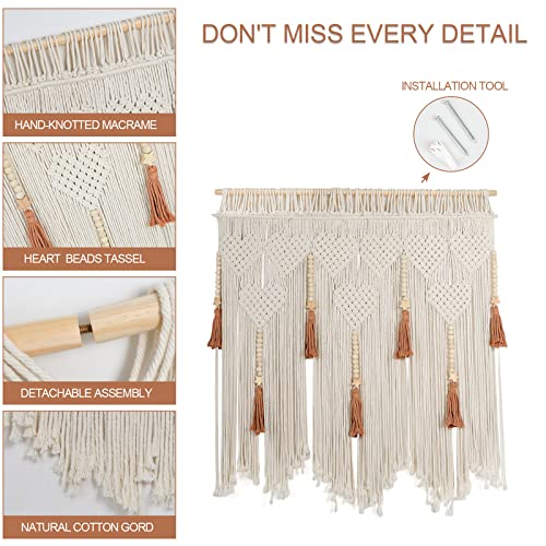 HOLAVIDA - مكرمية كبيرة للتعليق على الحائط من هولافيدا بساط مزخرف بقلوب بيضاء منسوج يدويا بنمط بوهو لشقة العائلة والسكن الجامعي وديكور 90 سم