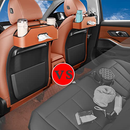 HOLDCY - منظم مقعد خلفي للسيارة مزود بحاملين للأكواب وصندوق مناديل وصندوق تخزين مع خطاف، تخزين متعدد الاستخدامات، مناسب للأطفال وللسفر من HOLDCY، اللون برتقالي