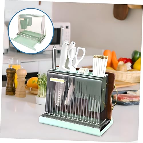 Generic - حامل - حل تخزين للمطبخ من الاكريليك مع حامل سكاكين وحجرة للاواني، تصميم خفيف الوزن ومتين ومقاوم للخدش لأسطح طهي نظيفة ومنظمة