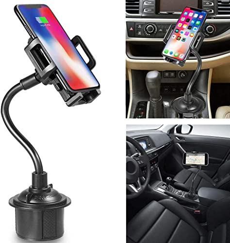- هولدر وحامل موبايل على قاعدة فى كوب السيارة متحرك 360 درجة بذراع طويل قابل للتعديل وقاعدة قابلة للتعديل - مناسب لجميع الهواتف ومناسب لكل السيارات