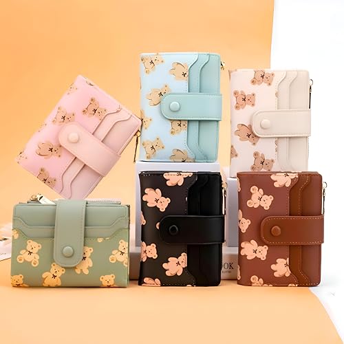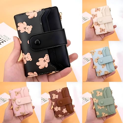 Generic - حامل بطاقة - محفظة قصيرة كورية بسيطة مع فيونكة جميلة، اغلاق حزام ربطة عنق، هيكل من جلد البولي يوريثين، مساحة شنطة عملات معدنية، جاذبية جميلة جماعية انيقة للنساء E (ازرق فاتح)