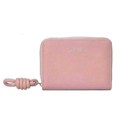Generic - حامل بطاقات - محفظة قصيرة كورية بسيطة مع فيونكة جميلة، اغلاق حزام ربطة عنق، هيكل من جلد البولي يوريثين، مساحة حقيبة عملات معدنية، وجمال جماعي انيق للنساء E (بينك)