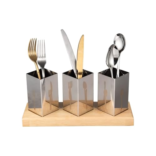 - مجموعة من الفولاذ المقاوم للصدأ من 3 قطع - تتضمن أربع علب متينة لتخزين الشوك والسكاكين والملاعق وأدوات المطبخ بأناقة في مساحة واحدة منظمة.