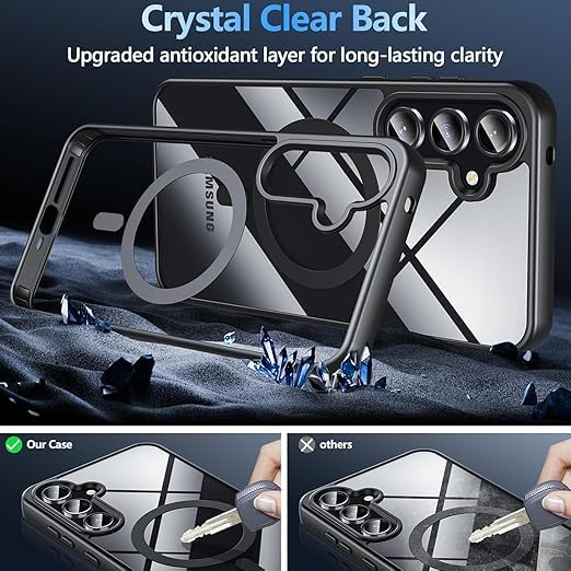 Holdex - حافظة حماية لهاتف سامسونج جالاكسي A56 شبكة الجيل الخامس 5G من هولدكس، حماية من السقوط العسكري، مضادة للاصفرار، ظهر صلب شفاف من البولي كربونات، حافظة هاتف واقية مضادة للخدش والصدمات - اسود