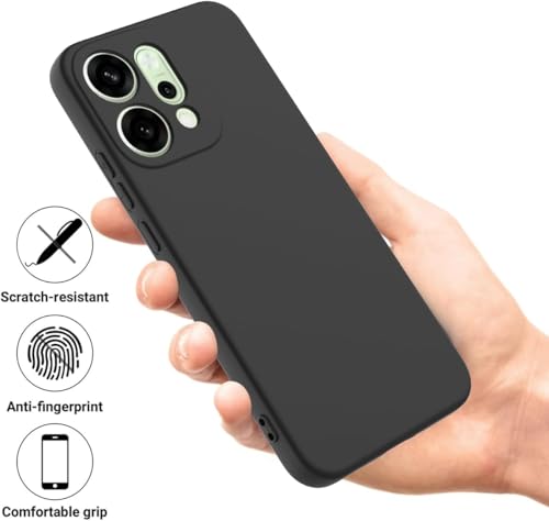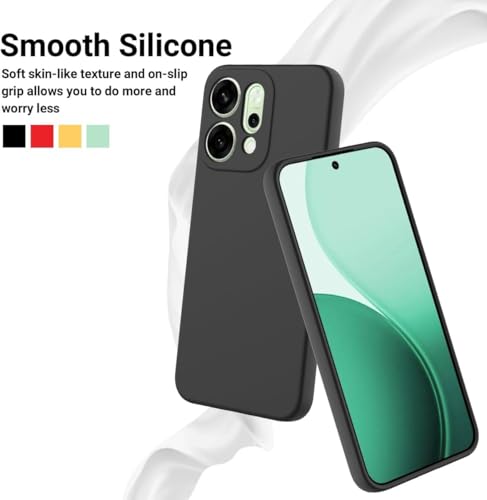 Holdex - جراب هولدكس سيليكون سائل متوافق مع اوبو رينو 14 برو ، حماية كاملة للكاميرا مع بطانة مايكروفايبر ناعمة، غطاء متين مضاد للصدمات والخدوش - أسود
