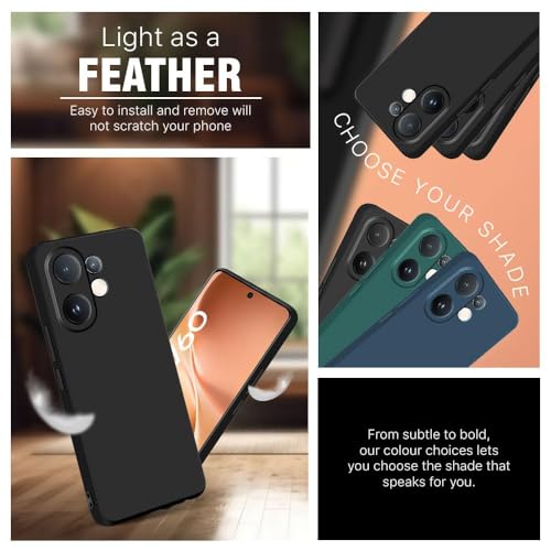 Holdex - جراب هولدكس سيليكون سائل متوافق مع فيفو V60 5G، حماية كاملة للكاميرا مع بطانة مايكروفايبر ناعمة، غطاء متين مضاد للصدمات - أسود