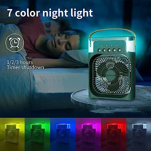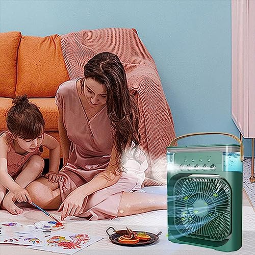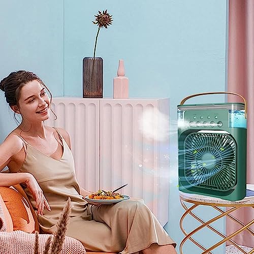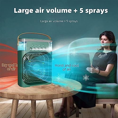 HoldOneLight - مبرد هواء تبخيري صغير ومرطب هواء، مروحة مكيف هواء محمولة، مروحة تبريد صغيرة شخصية 4 في 1 مع بخاخ رذاذ ماء، مزودة بـ 3 سرعات، مروحة رذاذ ماء للمكتب والمنزل والغرفة لون أخضر