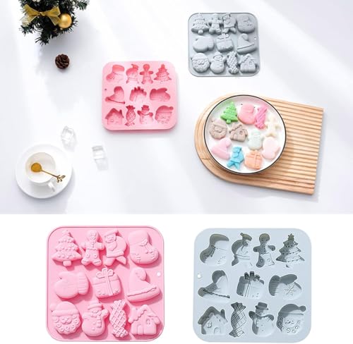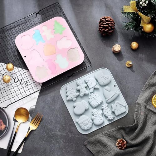 Generic - قالب كب كيك سيليكون للعطلات - 11 شكل كريسماس لطيف، امن للاستخدام في الفرن والميكروويف، قالب خبز غير لاصق صديق للغسل في غسالة الصحون، 18 × 18 سم، مثالي للحلويات والشوكولاتة والكعك الصغير (عبوتان)