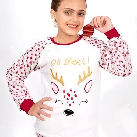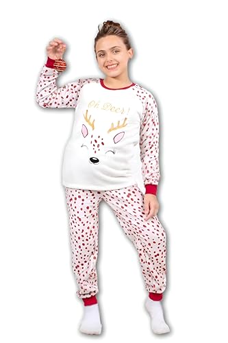 Generic - ملابس نوم للعطلات - طقم بيجامة للنساء بطبعة حيوان الرنة باكمام طويلة وسروال منقط مرح للاسترخاء الموسمي