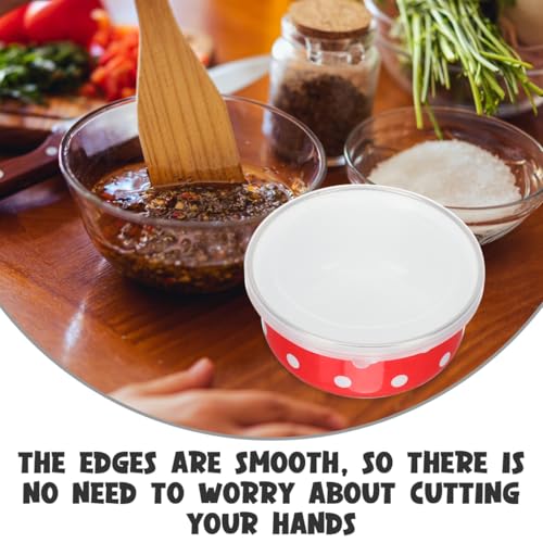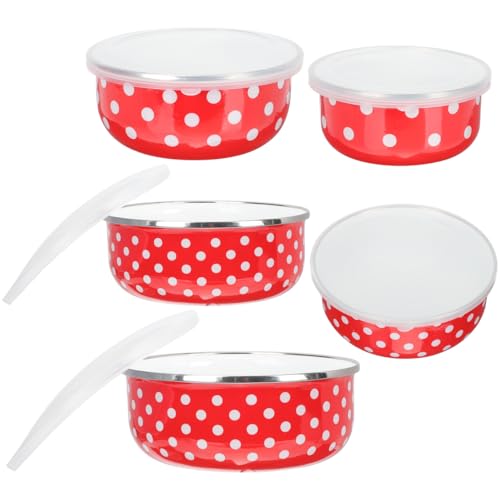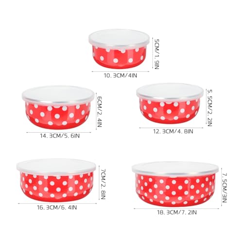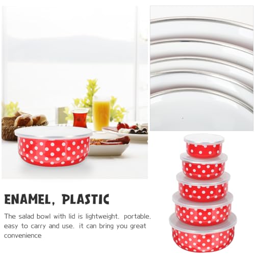 HOLIDYOYO - مجموعة حاويات تخزين طعام مطلية بالمينا مع غطاء من هوليديويو، اوعية قابلة للتكديس للسلطة والمعكرونة والفواكه، مثالية للتخزين في الثلاجة، اوعية حمراء بنقاط بيضاء