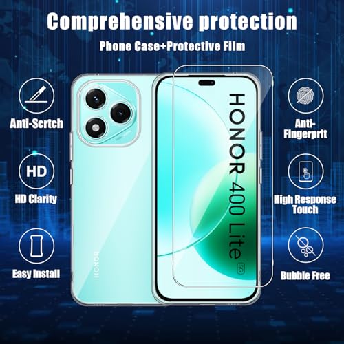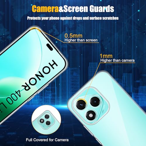 Holilo - حافظة حماية من هوليلو + قطعتين من واقي الشاشة من الزجاج المقوى لموبايل هونر 400 لايت، حافظة حماية رفيعة من البولي يوريثين الحراري مضادة للخدش بدرجة صلابة 9، حماية شاملة