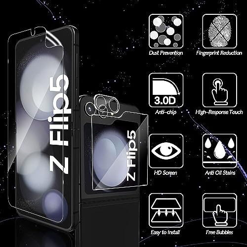 - واقي شاشة + حماية للكاميرا: مزيج مثالي - قطعتان من واقيات شاشة سامسونج جالكسي زد فليب 5 الجيل الخامس مصنوعة من 2 واقي شاشة للكاميرا. استخدم تقنية القطع بالليزر الدقيقة لتغطية الشاشة قدر الإمكان. يوفر أفضل حماية لشاشة هاتفك.