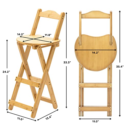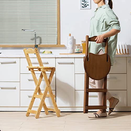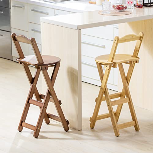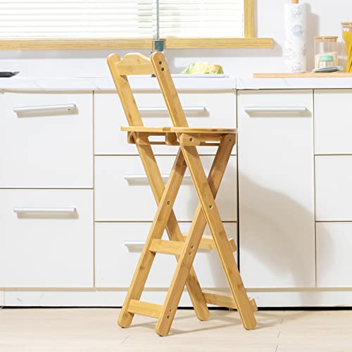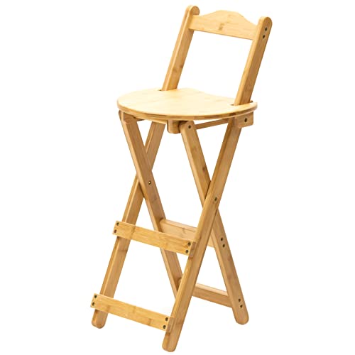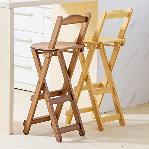 HollyHOME - كرسي بار بامبو قابل للطي بمسند قدمين، كرسي ترابيزة بدواسات وبمسند مرتفع للظهر للأماكن الداخلية والخارجية، كرسي مرتفع لترابيزة مائدة للمنزل والمطبخ والحانة والحفلة من هولي هوم، لون بني فاتح (بيرليوود)