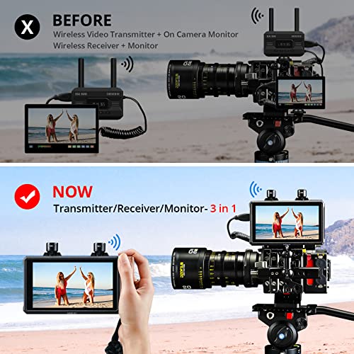 HollyView - جهاز استقبال فيديو مارس M1 لاسلكي 4K، نظام نقل 137 م HDMI SDI 4K/300 برو/400S برو، شاشة لمس LCD 5.5 بوصة، 1000 وحدة مضيئة في البكسل، بدقة 3D LUT، 4K/30fps HDMI، 4 تطبيقات مراقبة من هوليلاند