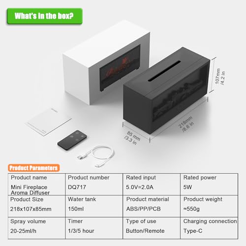 - 【تجربة بصرية واقعية】يعتمد موزع الروائح العطرية على الموقد الخاص بنا تصميمًا فريدًا للمدفأة وتقنية الرش بالموجات فوق الصوتية، والتي يمكنها تحويل الماء والزيوت العطرية بسرعة إلى رذاذ ناعم. يجمع تصميم الرذاذ ومظهر الموقد والأضواء لتقديم موقد واقعي وتأثير لهب، كما لو أن اللهب الحقيقي يحترق، مما يضخ الدفء والحيوية في الغرفة ويضيف جوًا رومانسيًا ومريحًا.