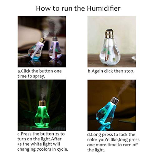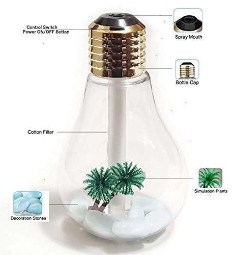HOMACE - مرطب هواء بلمبة من هوميس، مرطب بالموجات فوق الصوتية مع 7 مصابيح LED ليلية متغيرة للتشغيل/الايقاف، 400 مل USB محمول للمنزل والمكتب وغرفة النوم وغرفة الاطفال