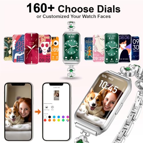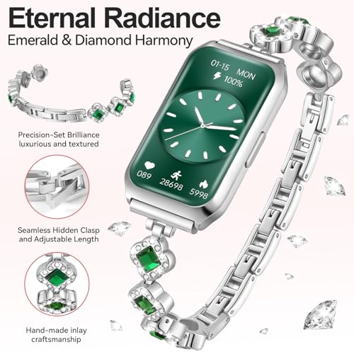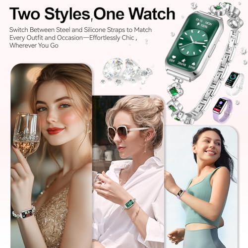 - تصميم بمظهر ممتاز وهدايا مثالية: الساعة الذكية مخصصة للنساء، وهي مزودة بنوعين من أساور الساعات، السوار المعدني له مظهر أنيق مناسب لأي مناسبة يومية، وسوار السيليكون كاجوال ومناسب للرياضة. ساعة تتبع اللياقة البدنية للنساء بتصميم جميل المظهر، وهي مناسبة للاستخدام اليومي؛ كما أنها هدية رائعة مثالية لعيد الأم وأعياد الميلاد والكريسماس وعيد الشكر وأي ذكرى سنوية ومسابقة رياضية