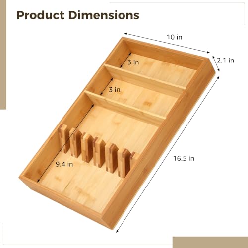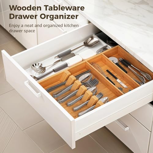 Homaisson - هومايسون منظم ادراج ادوات المائدة الخشبي - حامل صينية ادوات المائدة الفضية كبير 16.5 انش، درج مطبخ متعدد الاقسام، صينية تخزين ادوات المائدة للملاعق والشوك والسكاكين