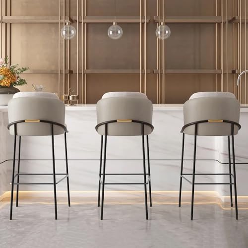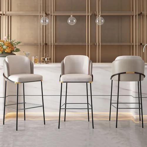 Homary - هوماري مقاعد بار عصرية من جلد البولي يوريثين مع ظهر ومسند للقدمين، كراسي فطور منجدة مقاومة للماء لجزيرة المطبخ او المنضدة (رمادي، كرسي واحد، ارتفاع 1م )