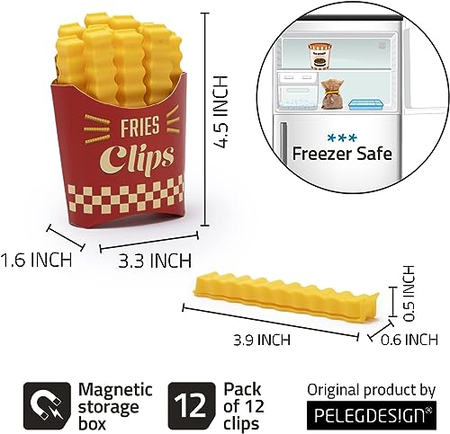 Homava - مجموعة مشابك أكياس على شكل بطاطس مقلية لإغلاق عبوات الطعام المفتوحة أكسسوارات للمطبخ ممتعة في صندوق مغناطيسي لتكون في متناول اليد باستمرار من هومافا، عبوة من 12 قطعة