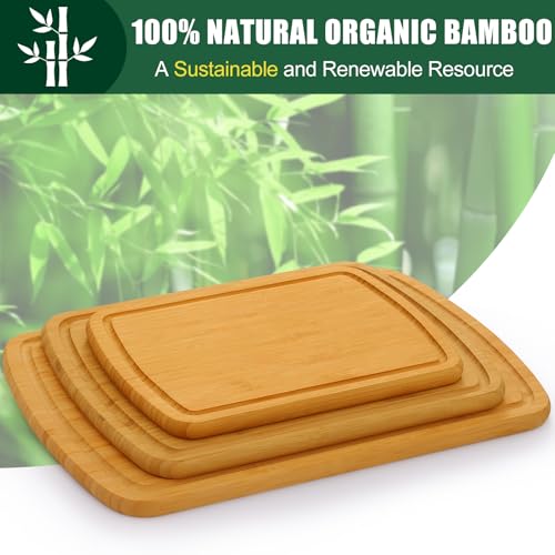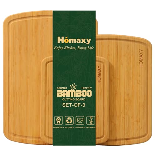 Homaxy - طقم ألواح تقطيع من البامبو للمطبخ من 3 قطع من هوماكسي، طقم ألواح تقطيع خشب مع تجويف للعصير، ألواح تقطيع خشب للمطبخ واللحوم والجبن والفاكهة والخضروات – مزيتة مسبقًا