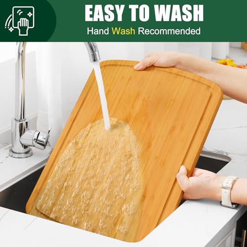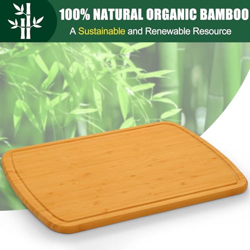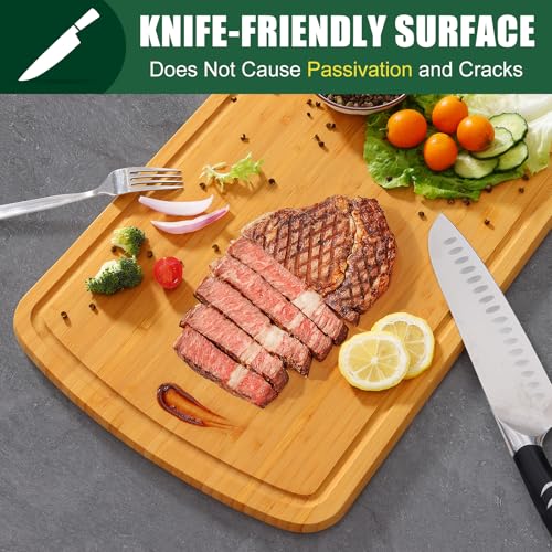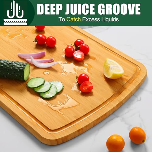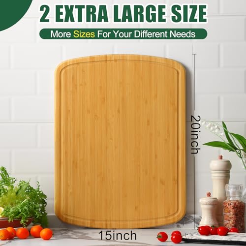 Homaxy - الواح تقطيع كبيرة جدًا من الخيزران للمطبخ من هوماكسي مقاس 20×15 انش، لوح تقطيع خشبي مقاس 2XL مع اخدود للعصير، لوح تقطيع خشبي للمطبخ واللحوم والجبن والفواكه والخضروات - مسبق التزييت