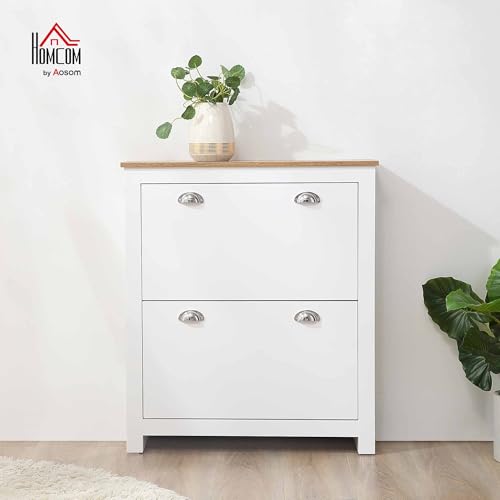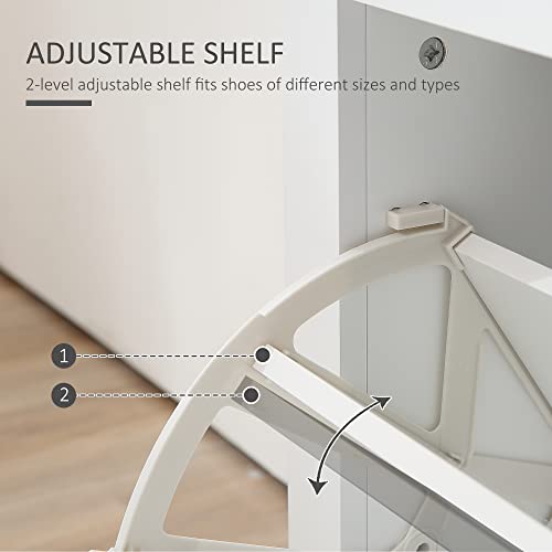 HOMCOM - جزامة بدرجين من هومكوم بتصميم حديث ضيق منظم تخزين أحذية مصنوع الخشب للمدخل بأبوب قلابة رف قابل للتعديل لـ 12 حذاء بلون أبيض خشب مُصنع