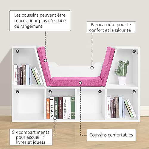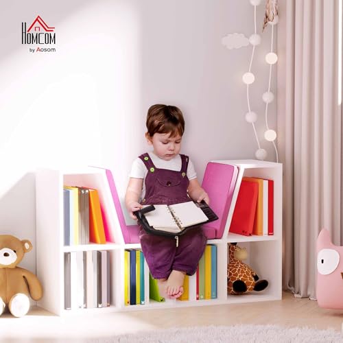 HOMCOM - خزانة كتب 2 في 1 بتصميم عصري من هومكوم مع 6 خزائن و3 وسائد متضمنة 102 سم طول × 30 سم عرض × 61 سم ارتفاع ، بلون أبيض/ بينك، خشب
