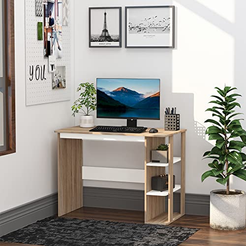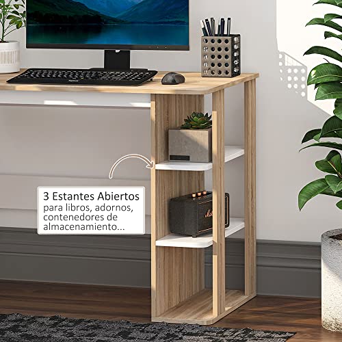 HOMCOM - طاولة مكتب 2 في 1 مع 3 رفوف بمساحة تخزين كبيرة من هومكوم، طاولة مكتب واسعة لغرفة النوم والاستوديو 100 × 55 × 74 سم، خشب، أبيض