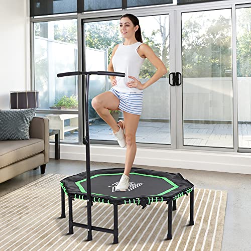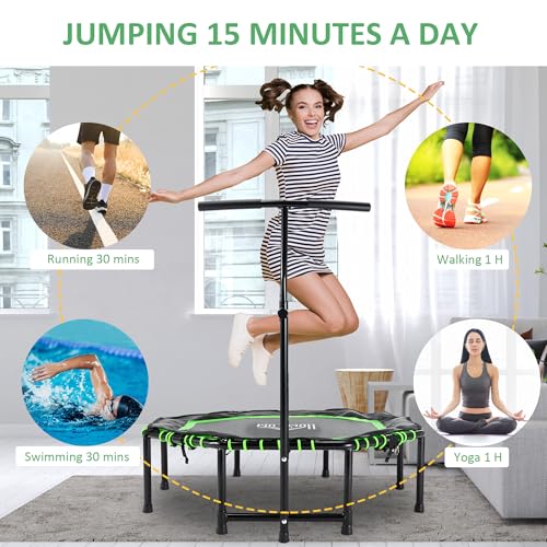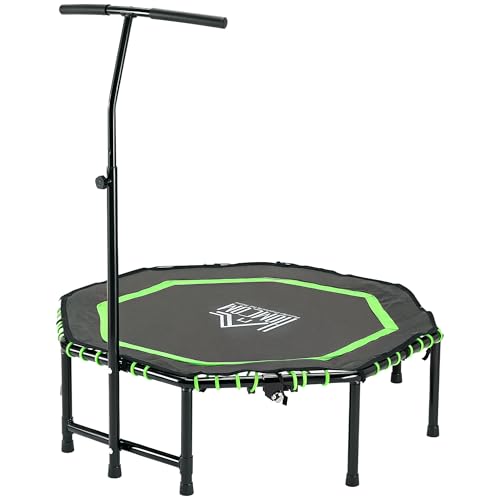 HOMCOM - هومكوم ترامبولين لياقة بدنية صغيرة مثمنة الشكل مقاس 48 انش قابلة للطي للاستخدام الداخلي والخارجي مع مقبض قابل للتعديل، اقصى حمولة 100 كغم - اخضر