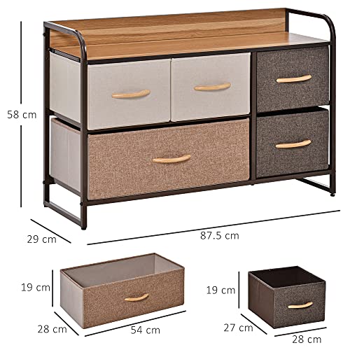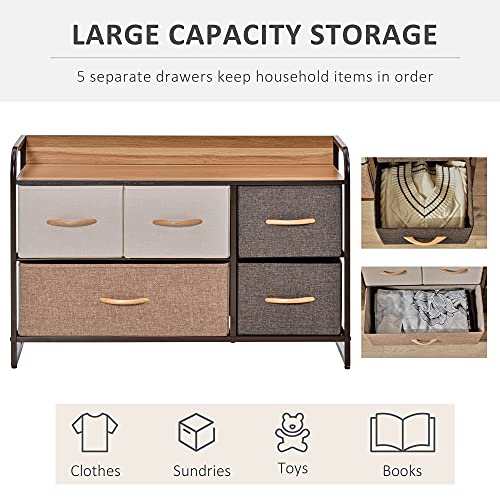 HOMCOM - خزانة بـ 5 أدراج، خزانة بأدراج من قماش الكتان، وحدة خزانة لغرفة النوم والمدخل، منظم تخزين بإطار من الصلب وجزء علوي خشبي من هومكوم