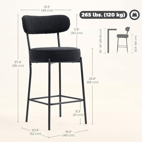 - قماش ناعم، راحة طوال اليوم: 2 كرسي للبار ملفوف بصوف الشيربا المريح ومحشو بفوم عالي الكثافة. يبدو مسند الظهر المنحني والمقعد المبطن وكأنه عناق دافئ - رائع للمحادثات الطويلة على القهوة أو الوجبات المريحة.