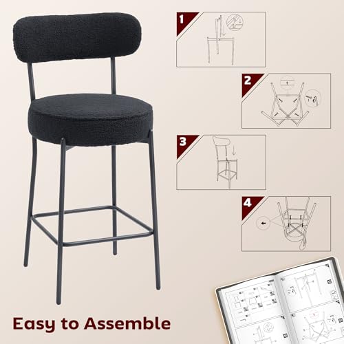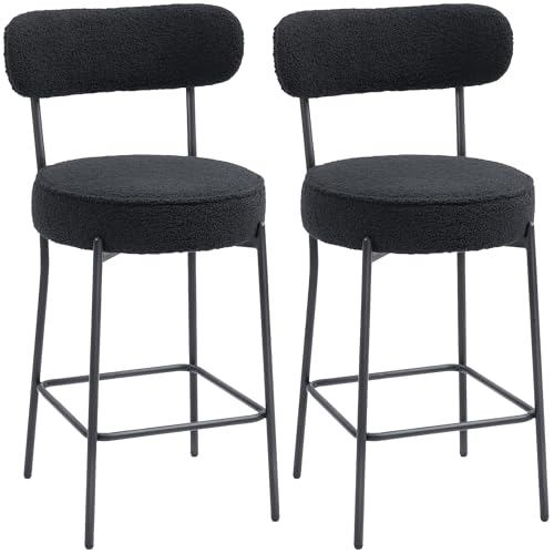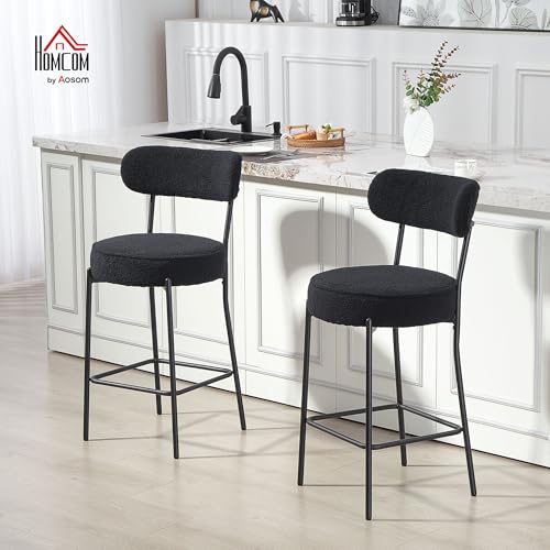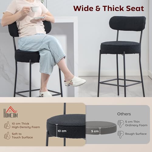 HOMCOM - كرسي بار مع مسند ظهر ومسند للقدمين حديث من صوف الشيربا لجزيرة المطبخ وغرفة الطعام من هومكوم، أسود، 2 قطعة، 68.5 سم