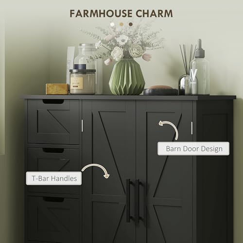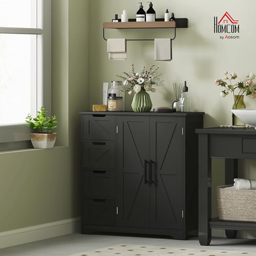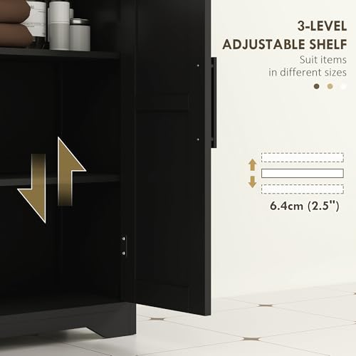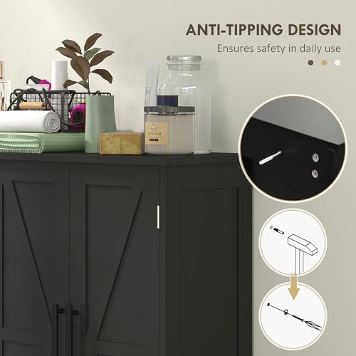 HOMCOM - خزانة أرضية للحمام، خزانة تخزين للحمام بتصميم ريفي بأبواب بنمط باب الحظيرة ورف قابل للتعديل من هومكوم، أسود