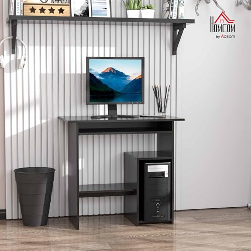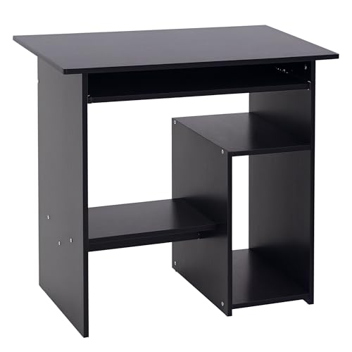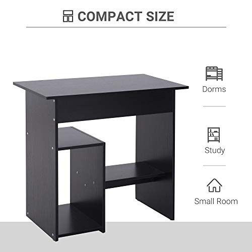 HOMCOM - طاولة كمبيوتر صغيرة الحجم من هومكوم، طاولة خشبية للوحة المفاتيح، رف تخزين، طاولة زاوية حديثة للمنزل والمكتب، أسود