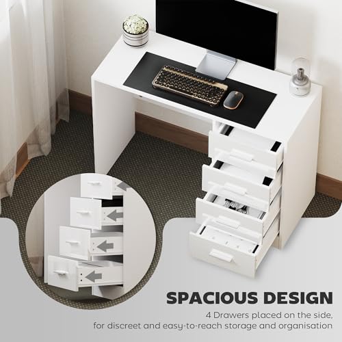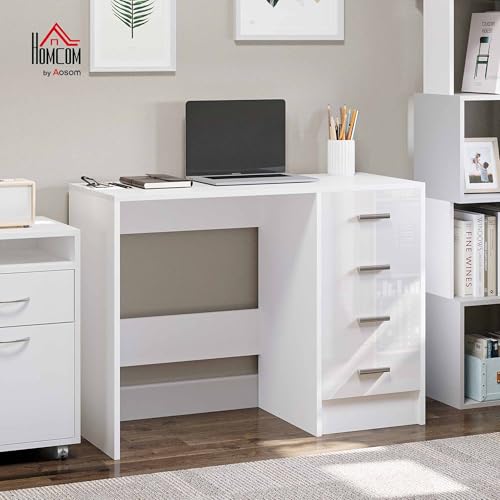 HOMCOM - مكتب كمبيوتر مع أدراج من هومكوم، منطقة عمل للكتابة والمكتب المنزلي فائق الجودة، أبيض